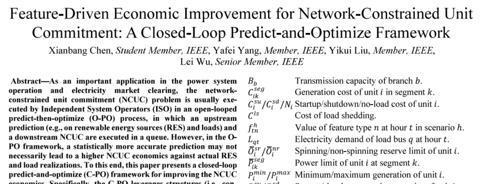 本文介绍了一种创新的电力系统调度模型,通过闭环预测与优化(C-PO)框架,使用特征数据训练成本导向的可再生能源预测模型,以成本而非预测误差评估预测质量。模型采用拉格朗日松弛加速训练,并以IEEE24节点系统为例进行演示。
