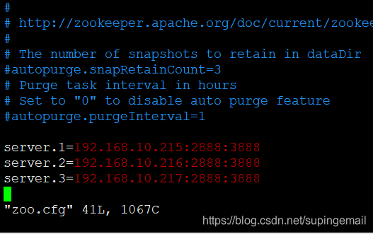 server.* 给对应的机器,每个ip上的zookeeper,都必须做如上的配置。配置完成之后,保存退出。
