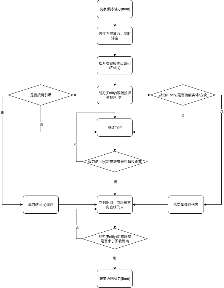 | 投掷蓄力动画 | 投掷出后生成战刃实体(Entity) |