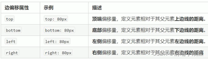 边偏移就是定位的盒子移动到最终位置,有top bottom left right 四个属性。