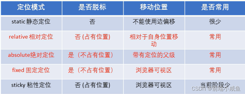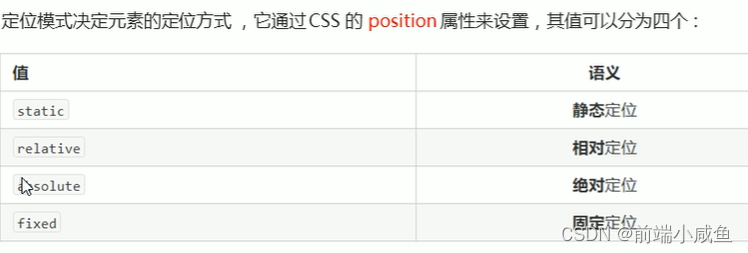 定位模式用于指定一个元素在文档中的定位方式。边偏移决定了该元素的最终位置。