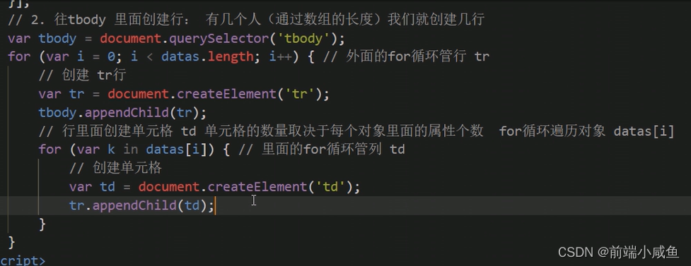document.creatElement(' ') 方法创建由 tagName 指定的 HTML 元素。因为这些元素原先不存在,是根据我们的需求动态生成的,所以我们也称为 动态创建元素节点