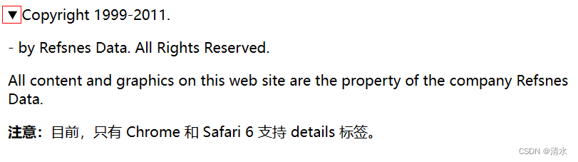<p><b>注意:</b>目前,只有 Chrome 和 Safari 6 支持 details 标签。</p>