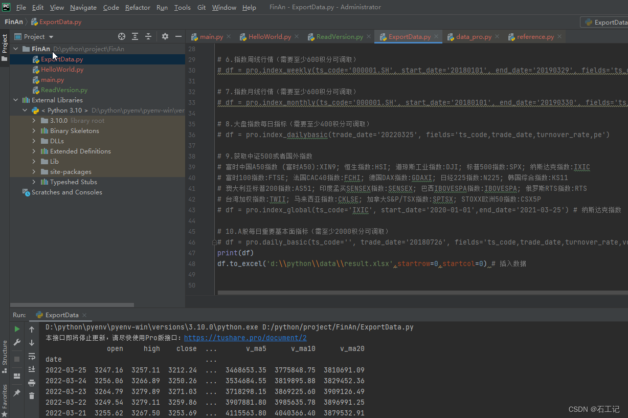 参考大数据的金融数据读取及分析(一)大数据的金融数据读取及分析(-)_石工记的博客-优快云博客