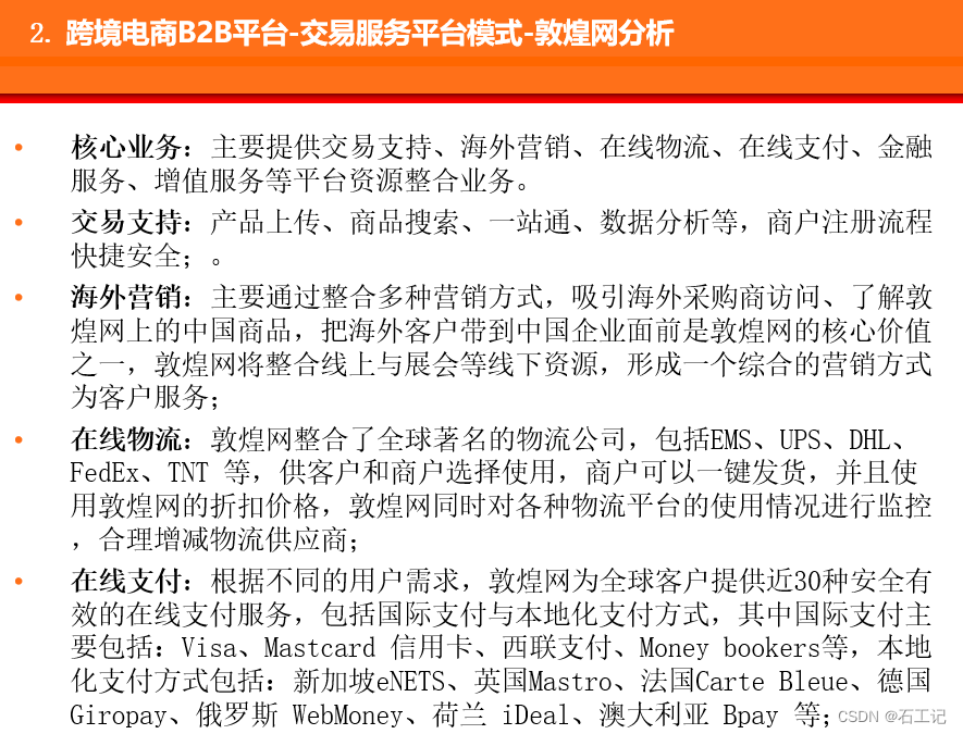 •(2) 主要代表企业:敦煌网、大龙网、易唐网等。