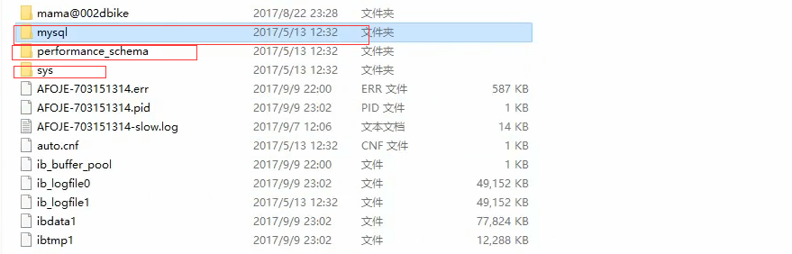 接着把主库中的以下几个文件夹复制到两个从库的data文件中,顺便把等下进行主从赋值的数据也赋值到两个从库中,如下mama@002dbike: