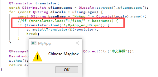 将en_US改为zh_TW,然后保存文件,再把文件名改为MyApp_zh_TW.ts,按本节步骤再次执行翻译操作,将会生成另一个翻译后的文件 MyApp_zh_TW.qm 。