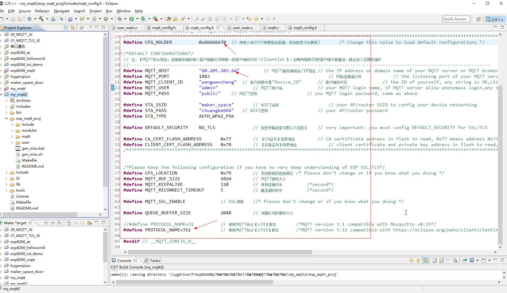 其次是硬件端的编程,esp8266的固件的编写。以及mqtt通讯SDK的修改(参考安信可和技新的资料)