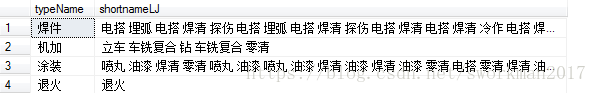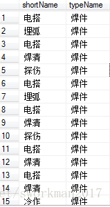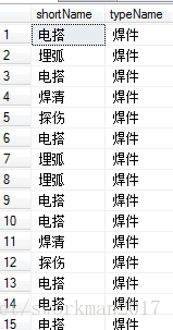 数据表“TB_GY”,有两个字段“shortName”,"typeName"