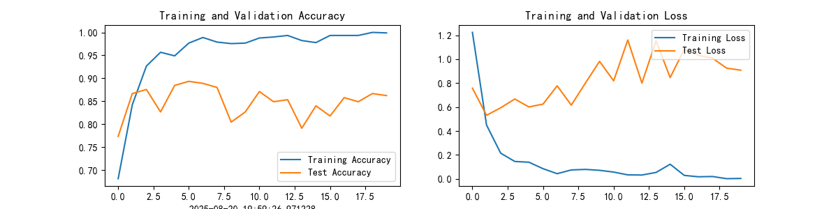 Epoch:20, Train_acc:99.9%, Train_loss:0.003, Test_acc:86.2%, Test_loss:0.908, Lr:1.00E-04