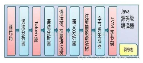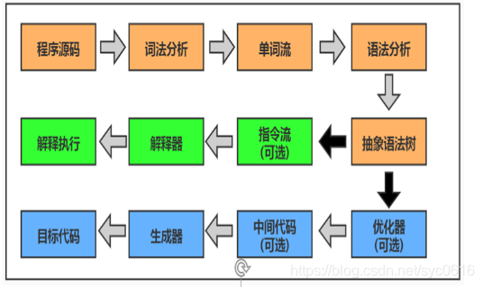 大部分的程序代码转换成物理机的目标代码或虚拟机能执行的指令集之前,都需要经过上图各个步骤。