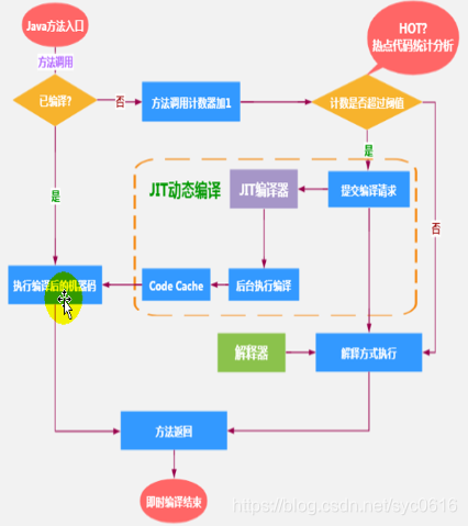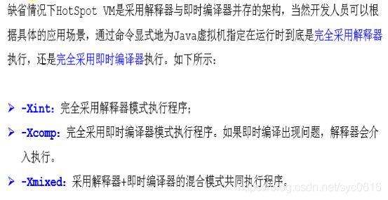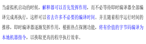 JVM执行JAVA代码的时候,同时会将解释执行与编译执行二者结合起来进行。