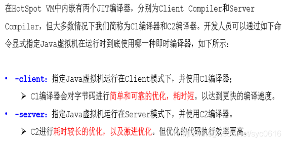 C2编译器启动时长比C1编译器慢,系统稳定执行以后,C2编译器执行速度远远快于C1编译器。