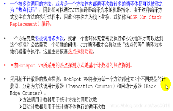 栈上替换(OSR):被多次调用的方法,一个方法中循环次数较多的循环体(热点代码),直接可通过JIT编程器编译为本地机器指令;