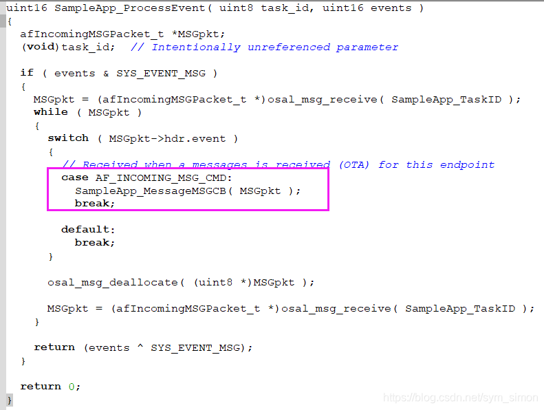 收到AF层来的消息(来自路由或终端),进行任务判断处理: