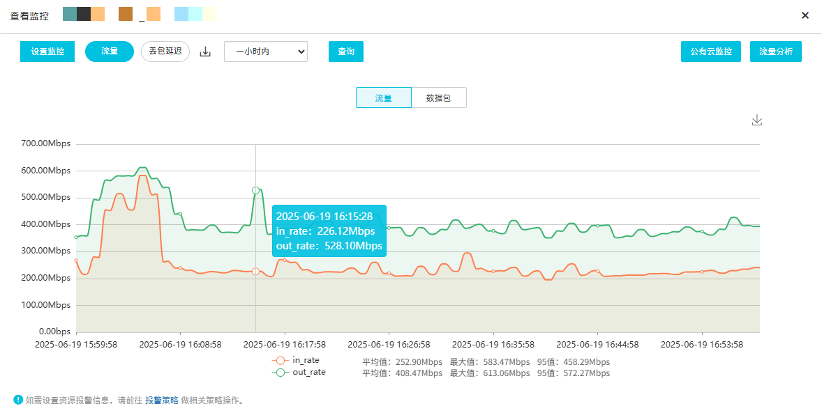 以1分钟(最小可以到15秒)为采样单位进行流量统计,让每一个小波动都无所遁形。即便是突发业务、攻击流量、异常行为,也能在图上形成清晰的“水花”,被第一时间捕捉到。