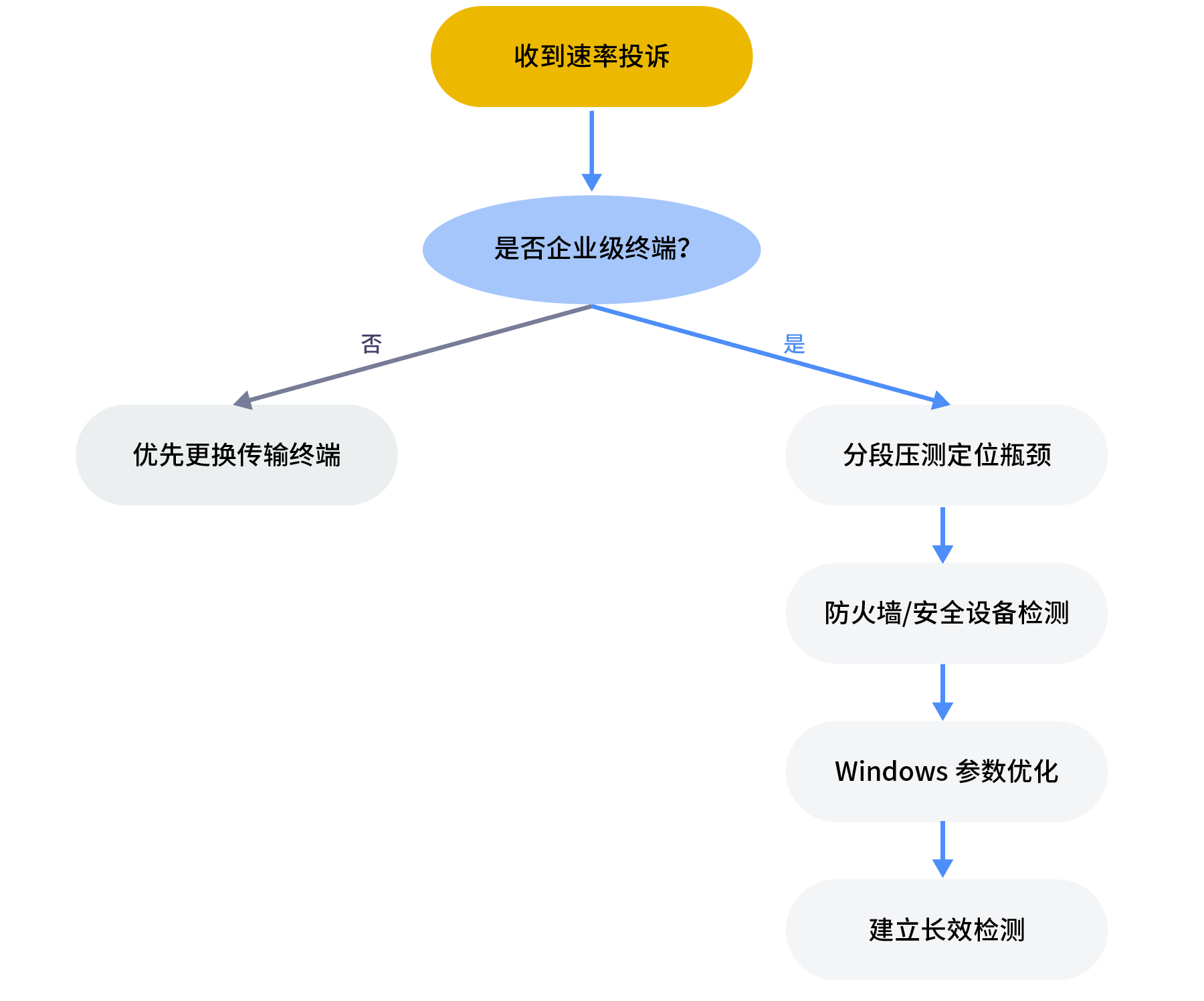 文档化拓扑图:标注防火墙、行为管理等中间设备(常见的速率衰减点)。