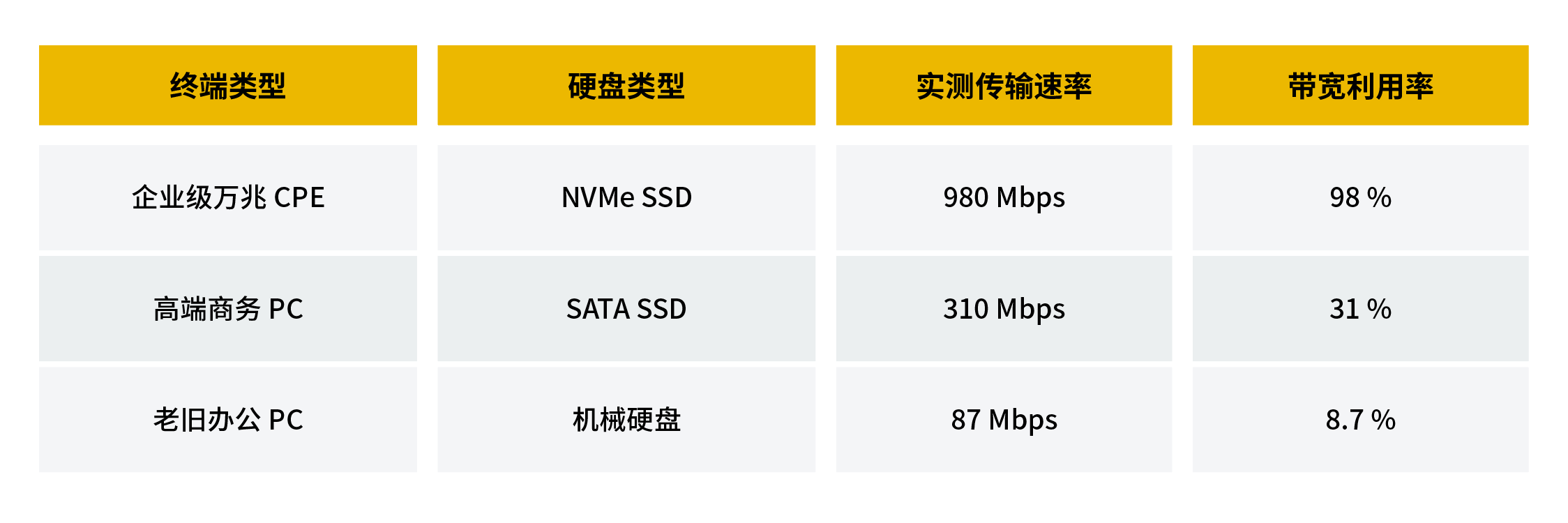 对核心传输节点部署企业级万兆CPE(推荐NVMe SSD+多千兆或万兆网卡),消除终端瓶颈。