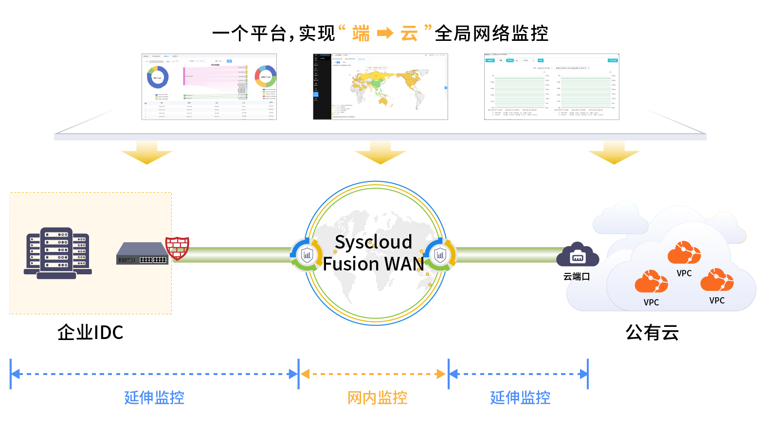故障定位难的困局,根源在于缺乏对网络路径的端到端监控力。要让业务真正畅通,必须建立起覆盖从终端用户到云上资源的全链路、统一视角的监控体系。这正是 Fusion WAN 可视化平台的核心价值所在——我们不只是“做专线”,而是致力于“守业务”。