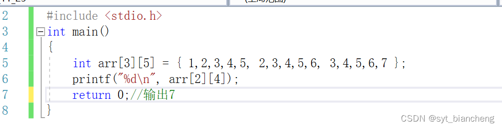 1 2 3 4 5 2 3 4 5 6 3 4 5 6 7 - 初始化时省略行但是不能省略列