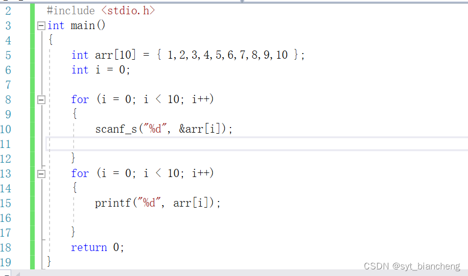 3.3数组的输入(如果自行输入值就会把初始值覆盖,循环代表 输入10次 也就是读取10次的意思,他能读取的最大值取决于数据类型int。。。。)