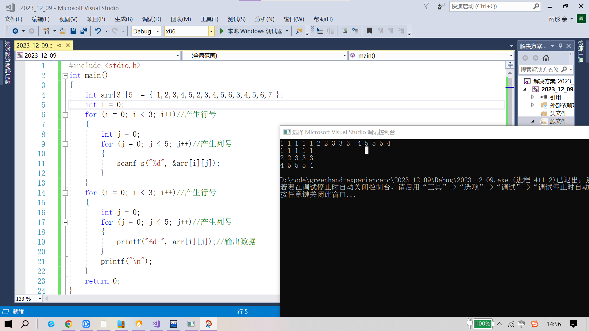 按照行初始化int arr4[3][5]={{1,2},{3,4},{5,6}};