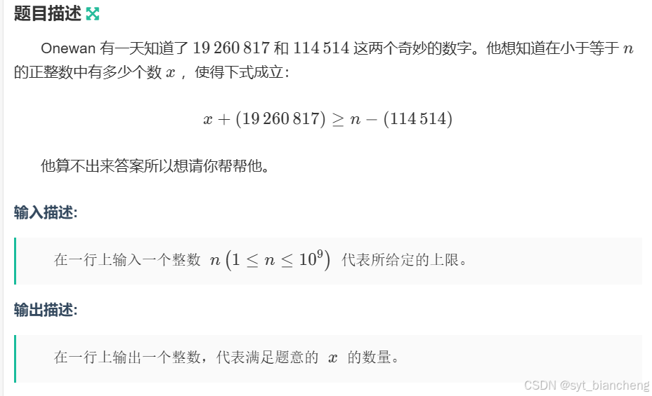 - (把19260817移到不等号的右边,左边只剩x,右边我进行了人工计算,得到)