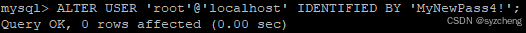 ALTER USER 'root'@'localhost' IDENTIFIED BY 'MyNewPass4!';![]()