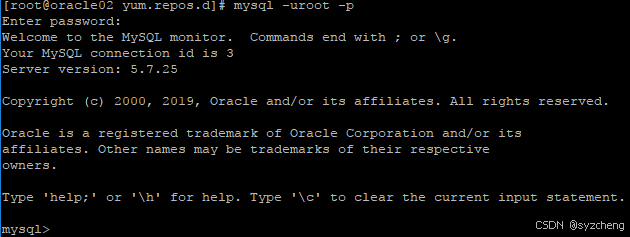 mysql -uroot -p