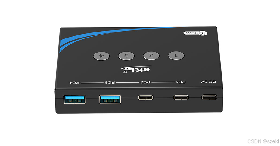 SH04 是一款支持 4 台电脑共享 4 个 USB 外设的切换器,传输速度为 5Gbps,足以满足日常办公需求。其核心优势在于“一键切换”,用户只需按下设备上的切换按钮,即可将外设控制权切换至目标电脑,无需拔插任何线缆。