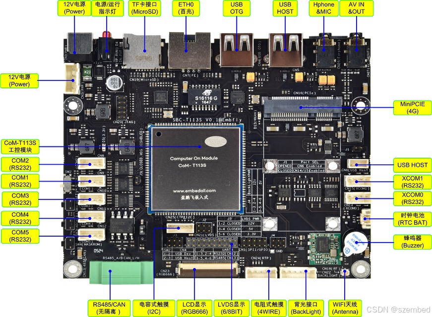 - 支持一路USB2.0 OTG(设计为TYPE-A接口);支持二路USB2.0 HOST;