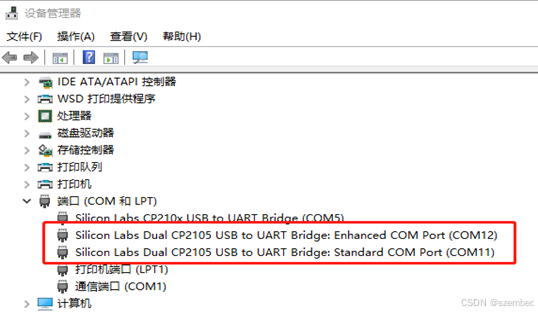 开始测试之前,如果是第一次使用Kit-CP2105转接板,需要去Silicon Labs官网下载此芯片对应的安装驱动CP210x USB to UART Bridge VCP Drivers - Silicon Labs (silabs.com),确保Kit-CP2105转接板连接到PC端,电脑能够正确识别到设备