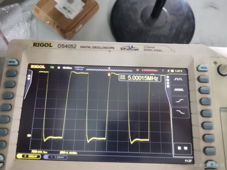 使用示波器检查该引脚发现时钟频率仅有 25M 。