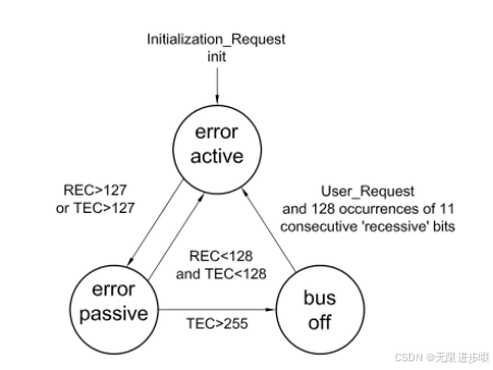 以下是 CAN 总线的错误状态转换: