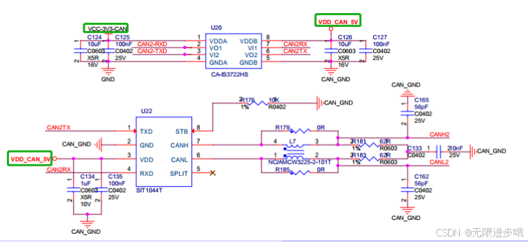 和硬件工程师沟通后,硬件工程师把 CAN 芯片换了另一个型号,发现能正常使用。