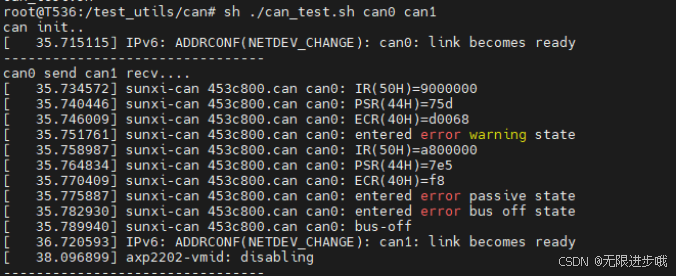 移植 CAN 驱动后,can0 和 can1 连接发现以下错误: