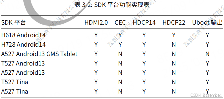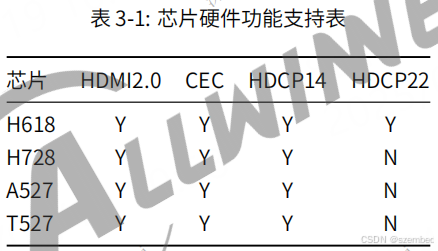 3、T527 HDMI 功能支持表