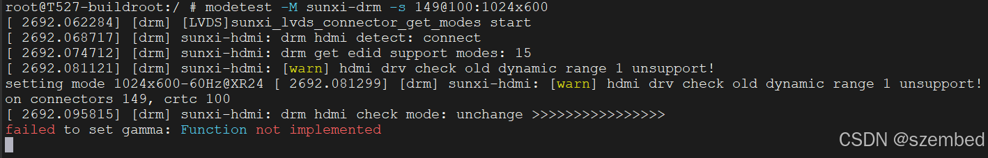 # modetest -M sunxi-drm -s <hdmi_connector_id>@<crtcs_id>:<分辨率> -v