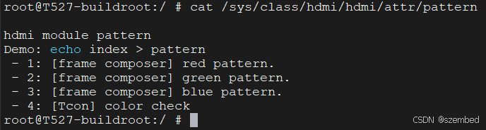 cat /sys/class/hdmi/hdmi/attr/pattern