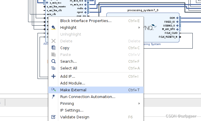 10、然后在WIZ IP的时钟输入引脚点击右键,Make External