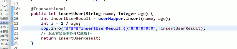 加上@Transactional的用处,会使得insertUser这个方法彻底执行完毕以后才会提交事务,