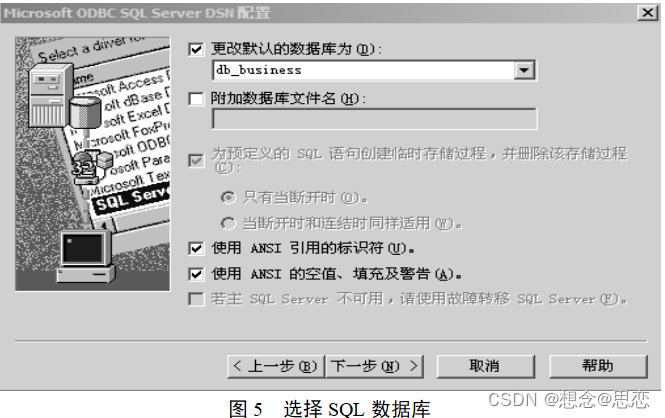 选择“下一步”按钮,在该页面中选择该数据库的数据库为“毕业设计”,如图5所示。