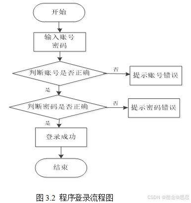 在这个部分,需要对程序的登录功能模块的运行流程(如图3.2所示),进行单独说明。程序设置登录模块也是为了安全起见,让用户使用放心,登录模块主要就是让用户提交登录信息,程序进行数据验证,验证通过的用户才能够成功登录程序。