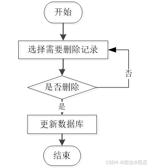 用户选择要删除的信息并单击Delete按钮。系统提示是否删除信息。如果用户想要删除信息,系统将删除信息。系统数据库删除信息。删除信息流程图如图3-5所示。
