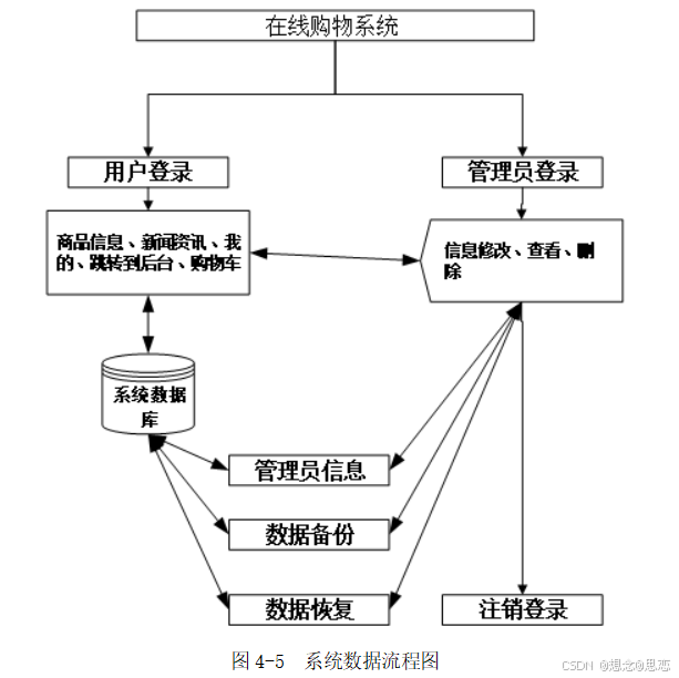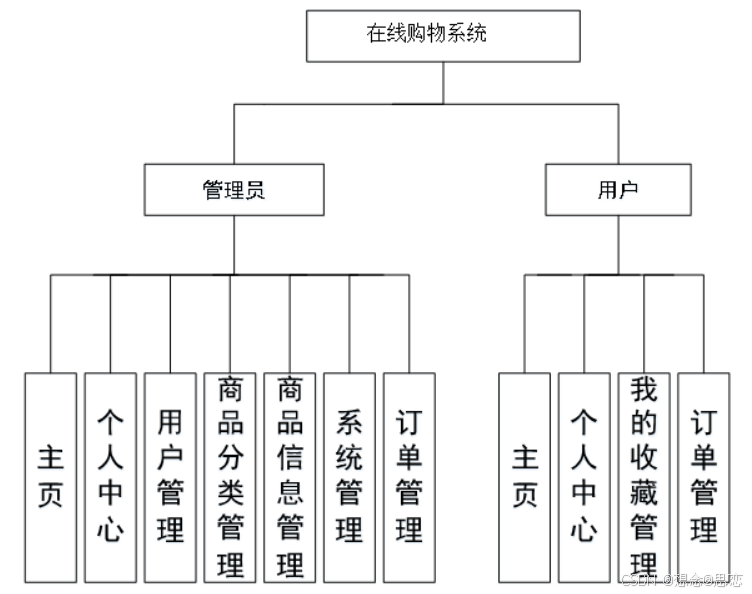 使用在线购物系统的用户分管理员和用户两个角色的权限子模块。