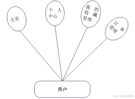 用户注册登录后可进行主页、个人中心、我的收藏管理、订单管理,用户用例如图3-2所示。