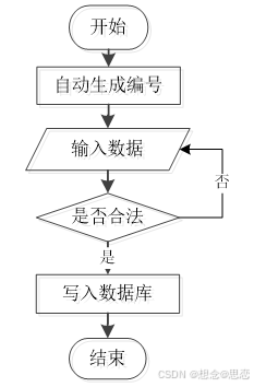 添加信息,编号系统使用自动编号模式,没有用户填写,用户添加信息输入信息,系统将自动确认的信息和数据,验证的成功是有效的信息添加到数据库,信息无效,重新输入信息。添加信息流程如图3-4所示。