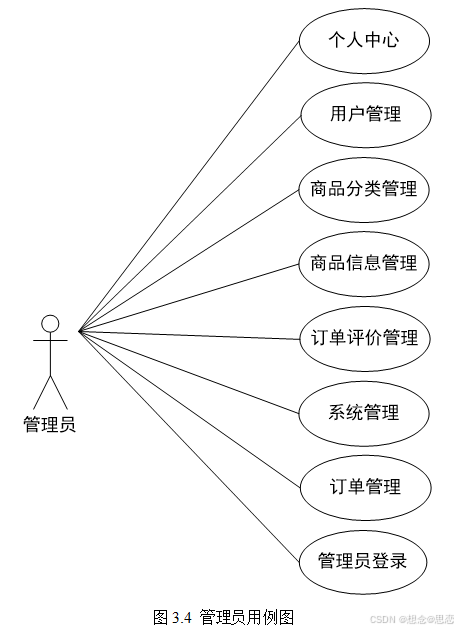 基于微信小程序的电子购物系统设置了管理员权限,其用例图见下图。管理员管理不同状态的订单,管理商品和用户,审核订单评价。