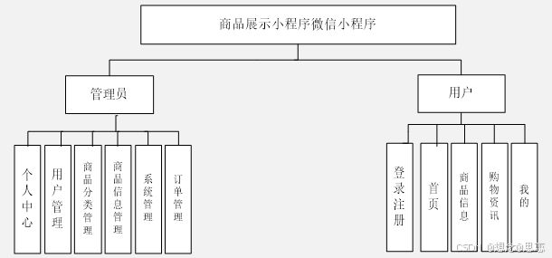3C产品售卖微信小程序操作系统的结构,功能模块如下图4-3。
