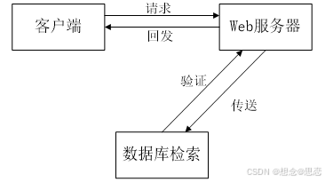 本系统后台采用B/S结构(Browser/Server,浏览器/服务器结构)和基于Web服务两种模式,是一个适用于Internet环境下的模型结构。只要用户能连上Internet,便可以在任何时间、任何地点使用。系统工作原理图如图4-1所示: